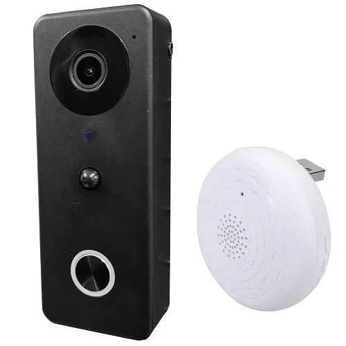 Ypatybės: Išmanusis durų skambutis su vaizdo kamera leidžia patogiai valdyti išmaniuosius namus. Vaizdo durų skambutis turi mechaninį iškvietimo mygtuką. Palaikomas durų atidarymas NO/COM/NC rele. Palaikomas durų skambučio kameros valdymas nuotoliniu būdu per išmaniąją Tuya programėlę (per telefoną, planšetinį kompiuterį). Pranešimas išsiunčiamas per 1 sek. Įrenginys turi mikrofoną ir garsiakalbį, ir palaiko dvipusį pasikalbėjimą, todėl galite gyvai pabendrauti su lankytojais. Įmontuota 2MP spalvota kamera leidžia stebėti viską, kas vyksta už durų. Kameros apžvalgos kampas iki 160° įstrižai. Palaikomos nuotraukos ir vaizdo įrašai. Naktinis matymas leidžia stebėti nakties metu iki 5 metrų atstumu. Aptikus judesį naktį iki 7 metrų atstumu, vaizdas įrašomas į SD kortelę. Naudojamas 2.4GHz Wi-Fi ryšys, Tuya programėlė palaiko Android ar iOS išmaniuosius įrenginius. Vaizdo kameros durų skambutis gali būti maitinamas įkraunamomis baterijomis. Pilnai įkrautų baterijų darbo trukmė gali siekti 3-4 mėnesius. Programėlė informuoja apie senkančias baterijas. Skambutis jungiamas RF radijo ryšiu 433Hz dažniu su vidiniu garsą perduodančiu įrenginiu. Vidinis durų skambučio įrenginys patogiai maitinamas per USB Type-A sąsają ir susiejamas su lauko įrenginiu. Vidinis durų skambutis turi integruotas 20 melodijų ir reguliuojamus 4 garso lygius nuo 0 iki 100dB. Išmanaus lauko durų skambučio saugykla: micro SD kortelė iki 128GB. Pastabos: SD kortelė įsigyjama atskirai. Tinklo adapteris vidinio durų skambučio maitinimui įsigyjamas atskirai.