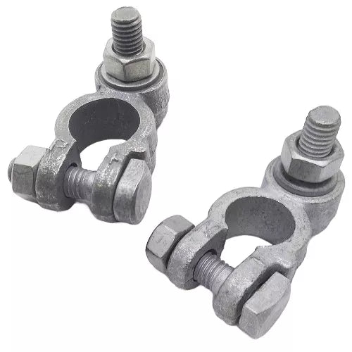 Žalvariniai akumuliatoriaus gnybtai, (+) ir (-) poliai, skirtingo diametro, tinka 35-50mm² laidams.