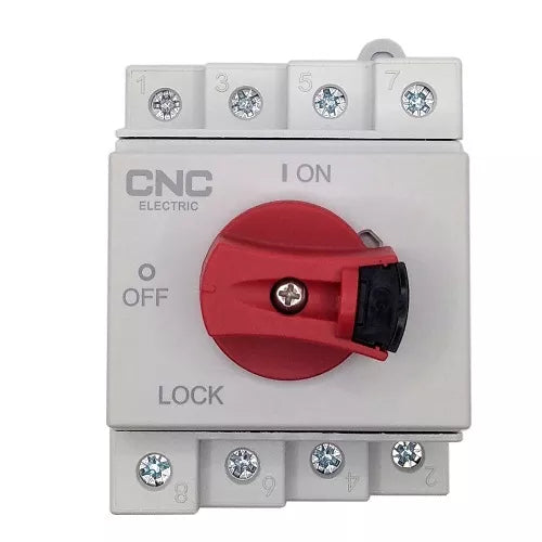 Nuolatinės srovės jungiklis DC grandinės atjungimui ir PV instaliacijos valdymui; montuojamas DIN bėgyje, iki 1000V / 32A, su rankena ir užraktu, saugiam naudojimui ir priežiūrai.