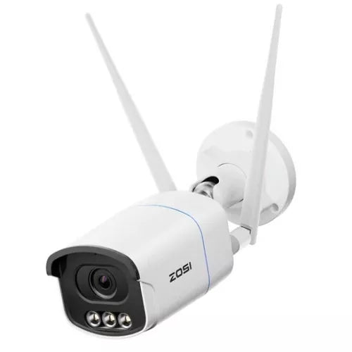Internetinė lauko kamera, AI, cilindrinė, su aktyviu atgrasymu skirta namų saugumui užtikrinti. Ji pasižymi 5MP skiriamąja geba, dvibusiu pasikalbėjimu ir „Aurora Flux“ technologija paremtu spalvotu naktiniu matymu esant silpnam apšvietimui. Nuotolinė prieiga per Wi-Fi, Zosi Smart programėle.