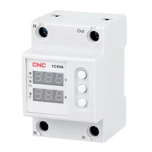 Ypatybės: Skaitmeninė įtampos ir srovės kontrolės relė naudojama vienfazės elektros įrangos apsaugai nuo viršįtampių, žemų įtampų ar viršsrovių. Automatinė apsauga nuo viršįtampių ir žemos įtampos tinka vienfazėms kintamosios srovės 230V grandinėms, kurių vardinė darbinė srovė ne didesnė kaip 63A. Tai mikroprocesoriumi pagrįstas vienfazės kintamosios srovės tinklų įtampos stebėjimo įtaisas, skirtas apsaugoti elektros įrangą nuo sugadinimo. Įrenginys analizuoja pagrindinę įtampą ir rodo įtampos ir srovės vertes skaitmeniniame indikatoriuje. Kai grandinėje atsiranda viršįtampių, žemų įtampų ar viršsrovių problemų, relė greitai ir patikimai atjungia grandinę, o kai grandinės įtampa grįžta į normalią būseną, automatiškai įjungia maitinimą. Mygtuku nustatoma pageidaujama įtampos vertė ir perjungimo laikas. Relės įjungimo uždelsimas apsaugo prijungtus prietaisus nuo pakartotinių įtampos svyravimų, kurie gali įvykti tinklui stabilizuojantis. Kompaktiška konstrukcija, patikimas veikimas, lengvas instaliavimas ant DIN bėgelio. Prijungimui galima naudoti aliumininius ir varinius laidus. Pritaikomas administraciniuose, pramoniniuose ir gyvenamuosiuose pastatuose; elektros skydeliuose ir pramoninėse mašinose, kur svarbu užtikrinti nuolatinį įtampos ir srovės stebėjimą. Pastaba: relė apsaugo nuo ilgalaikių tinklo įtampos svyravimų, tačiau nėra specialiai pritaikyta apsaugoti nuo žaibo sukeltų trumpų impulsinių viršįtampių. Tam skirti viršįtampių ribotuvai (SPD). Pagrindinės funkcijos: 1. Apsauga nuo viršįtampių. 2. Apsauga nuo žemos įtampos. 3. Apsauga nuo viršsrovių. 4. Automatinis atkūrimas. 5. Įtampos rodmuo (įtampos matavimas). 6. Srovės rodmuo (srovės matavimas).
