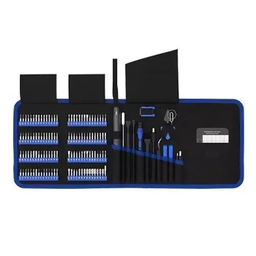 Tai universalus atsuktuvų rinkinys, kurį sudaro profesionalus 120 vnt. tikslių antgalių rinkinys su elektrine atsuktuvo rankena, įkraunama per USB Type-C jungtį, bei reguliuojamo ilgio atsuktuvo rankena ir kitais elektronikos remonto įrankiais, patogiame nešiojamame tvirto audinio dėkle.