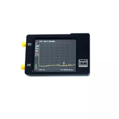 Low input mode spec: Input frequency range from 100kHz to 350MHz (with some limitations down to 10kHz). Input impedance 50 ohm when input attenuation set to 10dB or more. Selectable manual and automatic input attenuation between 0dB and 31dB in 1 dB steps. Absolute maximum input level of +10dBm with 0dB internal attenuation. Absolute maximum short term peak input power of +20dBm with 30dB internal attenuation. Suggested maximum input power of +5dBm with internal attenuation in automatic mode. For best measurements keep input power below -25dBm. Input Intercept Point of third order modulation products (IIP3) of +15dBm with 0dB internal attenuation. 1dB compression point at -1dBm with 0dB internal attenuation. Power detector resolution of 0.5dB and linearity versus frequency of +/-1dB. Absolute power level accuracy after power level calibration of +/- 1dB. Lowest discernible signal using a resolution bandwidth of 30kHz of -102dBm. Frequency accuracy equal to the selected resolution bandwidth. Phase noise of -90dB/Hz at 100kHz offset and -115dB/Hz at 1MHz offset. Spur free dynamic range when using a 30kHz resolution bandwidth of 70dB. Manually selectable resolution filters of 3, 10, 30, 100, 300, 600kHz. Automatic selection of one of the 57 resolution filters. On screen resolution of 51, 101, 145 or 290 measurement points. Scanning speed of over 1000 points/second using largest resolution filters. Automatic optimization of actual scanning points to ensure coverage of the whole scan range regardless of the chosen resolution bandwidth. Spur suppression option for assessing if certain signals are internally generated or actually present in the input signal. After a small HW modification it is possible to Listen to the demodulated audio.